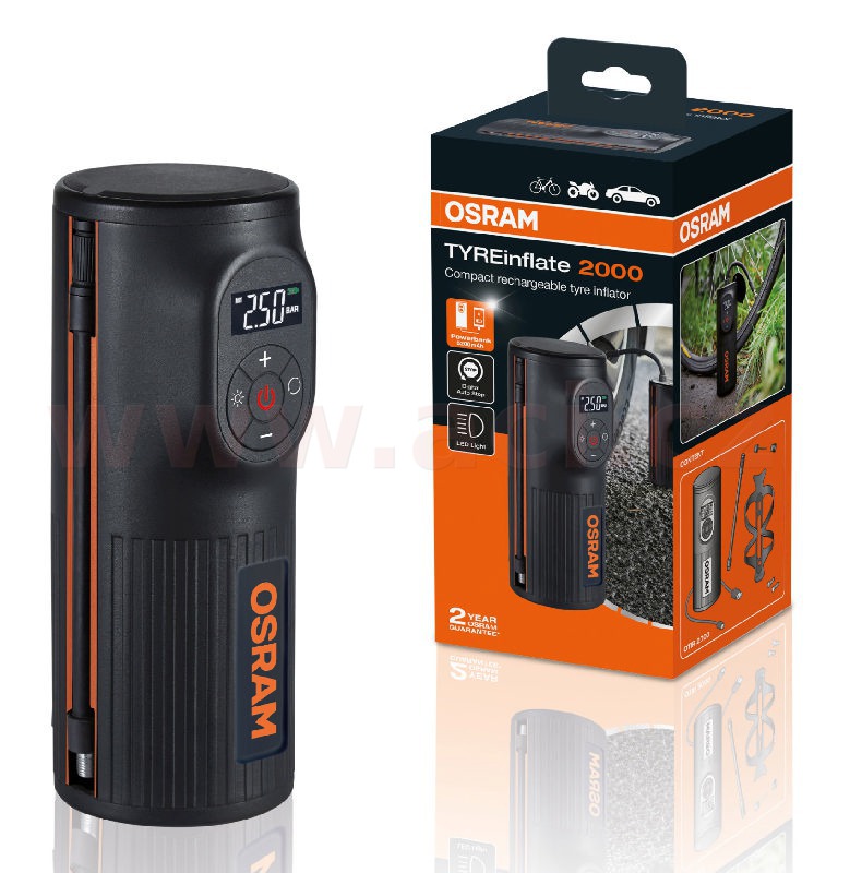 také na nafouknutí pneumatik pro jízdní kola, skútry a motocykly. Díky lehké a kompaktní konstrukci je OSRAM