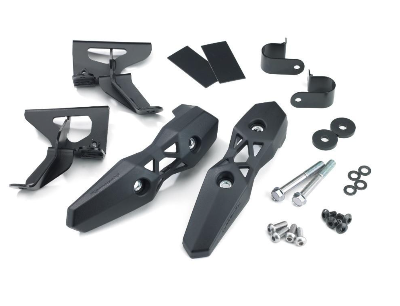 Houževnaté padáky vyrobené z plastového polymeru a oceli chrání rám a motor před poškozením při pádu motocyklu na bok.