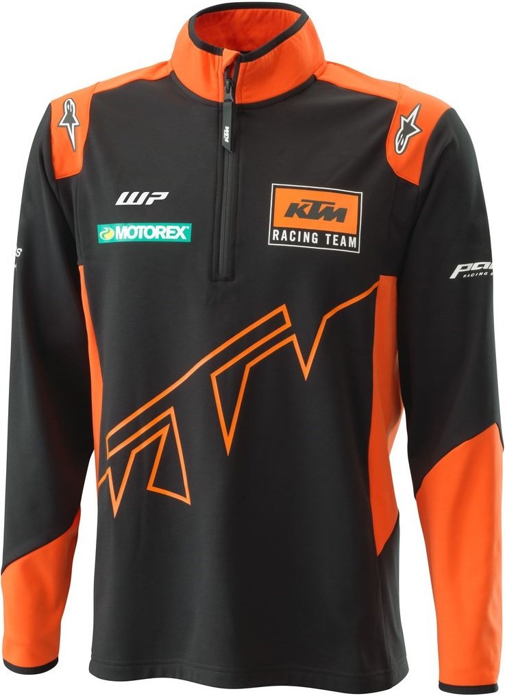 Funkční pánský svetr/mikina vyrobený z vysoce kvalitního elastického materiálu v KTM Racing stylu. KTM Racing Team logo na přední i zadní straně, loga sponzorů vytištěna na obou rukávech.