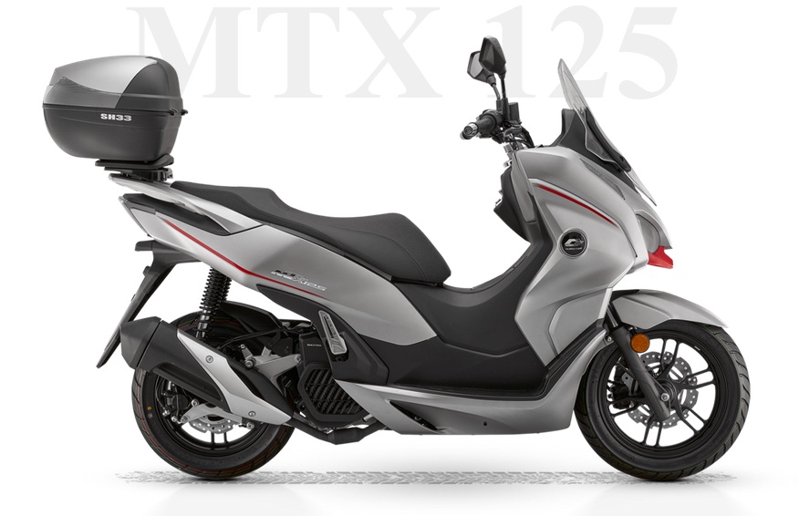 MTX 125 má stejně jako všechny naše modely příjemný neokoukaný design. Design tohoto skútru pochází z italské designové školy, což je znát na první pohled. Co Vás dále mile překvapí je hezké zpracování a krásné detaily, které dělají z MTX 125 prémiový skútr pro náročné. Jmenujme například krásný hluboký lak, hodnotné ergonomické prošívané sedadlo, které by bylo u jiných značek spíše příplatkové příslušenství, než sériová výbava. Ladně působí též výfuk, který skvěle doplňuje sportovní charakter MTX 125. Nakonec zmíníme krásnou, ostře řezanou masku s LED světlomety, a nebo propracované koncové LED světlo - to vše je sériový MTX 125!
