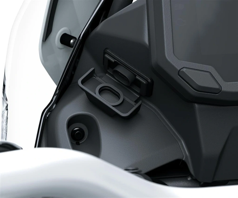 Voděodolná zásuvka USB-C, pohodlně umístěná vedle světlometu v krytu motoru. Tlumení vibrací a zásuvka může být uzavřena krytkou. Celkový maximální výstup je 3 A.