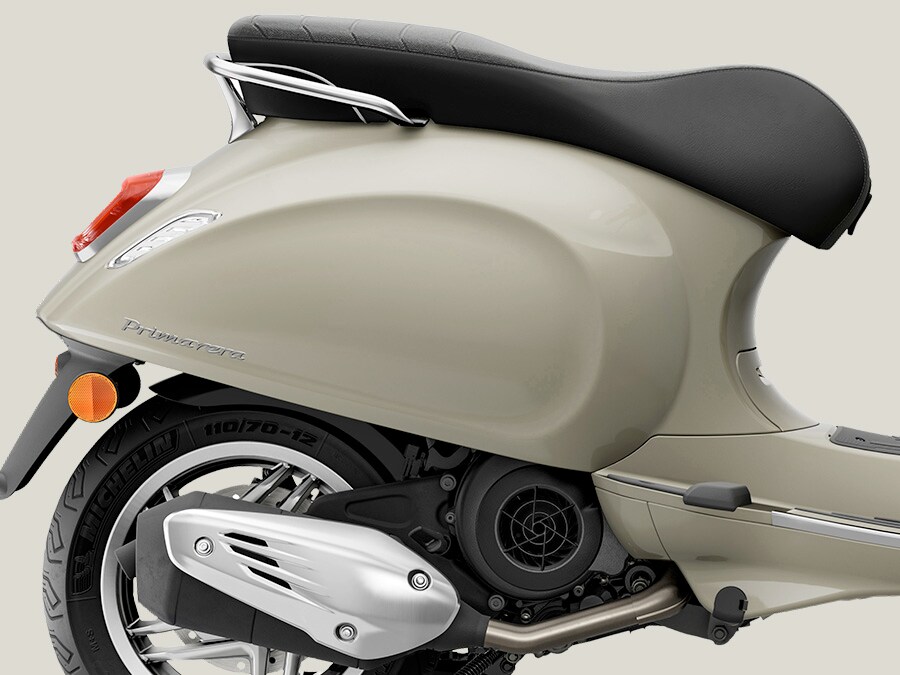 Spojení moderních detailů s nadčasovým stylem. Vespa Primavera 125 se pyšní harmonickým designem, který dotvářejí chromové akcenty a svěží povrchové úpravy. Je to zkrátka model, který s moderním citem odkazuje na bohaté dědictví značky Vespa. Přední část dostala nový design ozdobného prvku na předním blatníku a kravatě, zatímco aktualizované, modernější 12” ráfky kol dotvářejí vzhled, který je ještě propracovanější a výraznější.